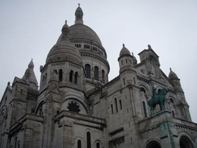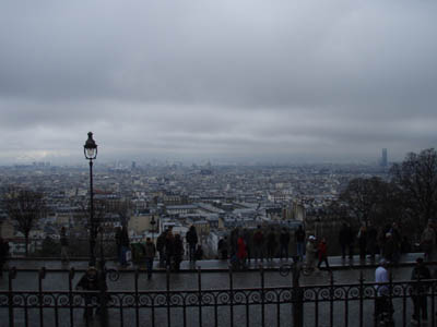 ここを通り 抜けるとサクレクール寺院があり、途中の丘の上から上半分が雲に隠れたエッフェル塔も見える。