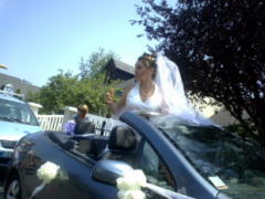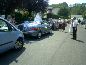 途中みんなでクラクションを鳴らしながらすっごく賑やか。すれ違う車の人も結婚式があるんだってわかると