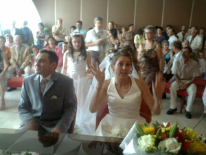 市長の冗談にみんなで笑いながら、またその冗談を返しながら楽しく結婚式が進んでいく。