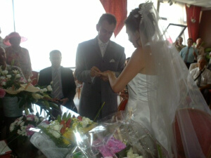 指輪の交換、サインの交換、いちいちみんながはやし立てたり、市長が冗談言ったり