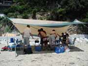昼からはBBQ。enoさんのテントは快適だ。